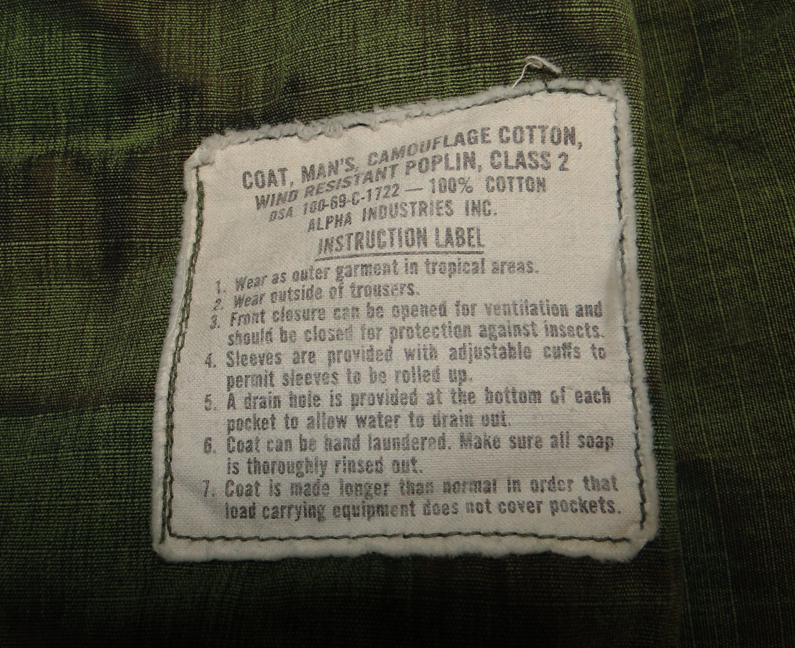| coat, man's, combat, tropical, contract No. DSA100-69-C-1722