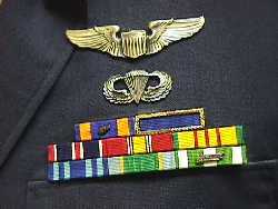 The insignia below consists of a pilot's badge, paratrooper qualification and several