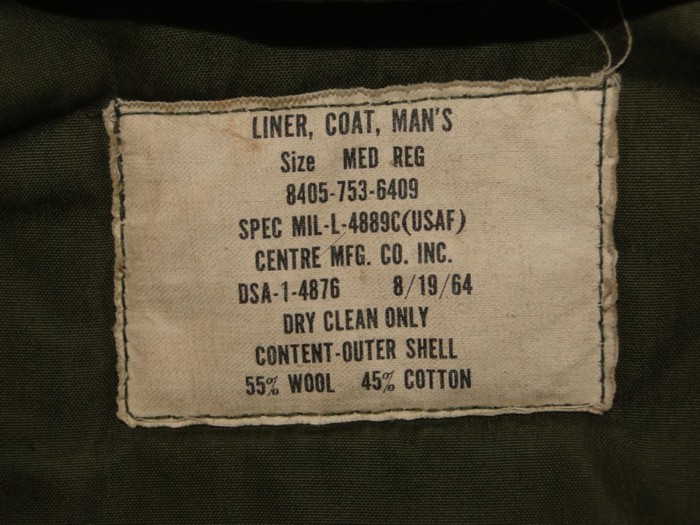 1964 US AIR FORCE FIELD JACKET LINER - VIETNAM WAR -