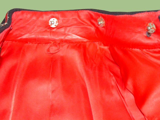 jacket. Black pants with a stripe running alongside.  Finely embroidered to display