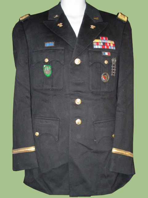 US Army 1969 Major Dress Uniform - SHAPE This is an American Army dress uniform.  Dated 1969.  Vietnam war period.  Of nylon construction.  Four