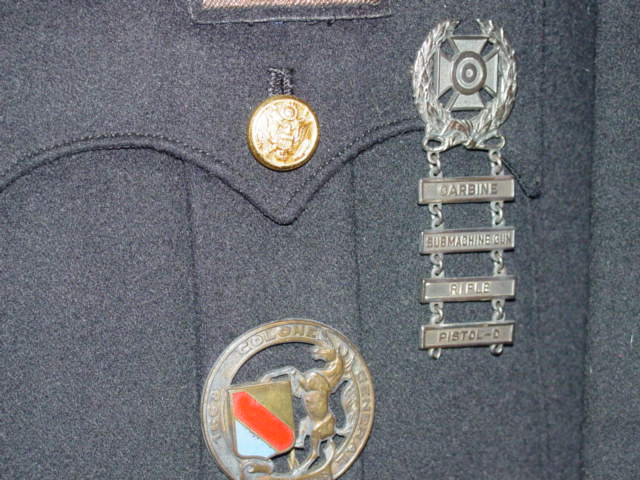 This uniform was used for special evening events, graduations and parades.  It has multiple ribbons and