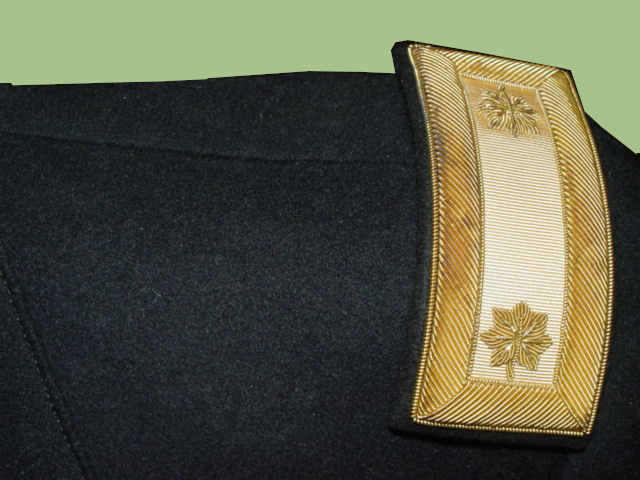 The rank of Major is embroidered in bullion and placed on shoulder boards.  They are attached to the shoulders
