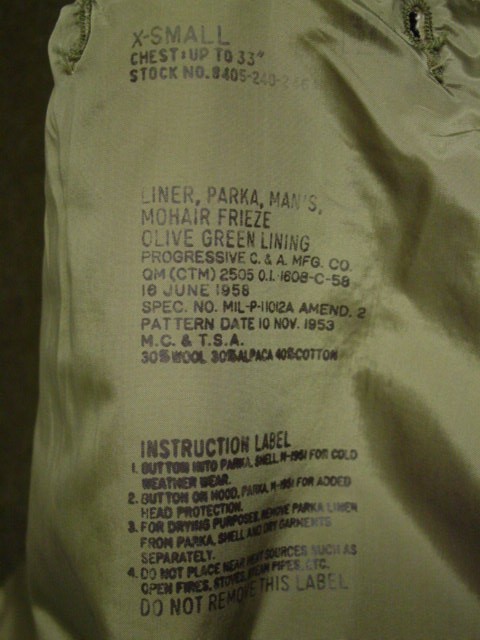 The item featured here is a heavy duty parka.  Same design as used during the Korean war.