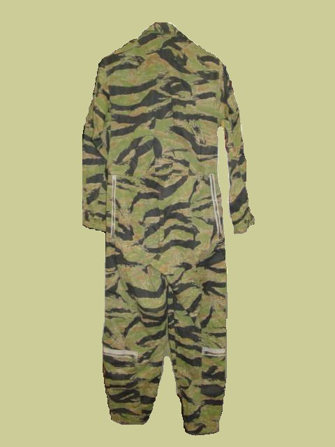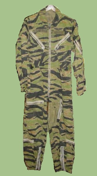 1960's US Army Tiger Stripes Flight Suit - The Vietnam war saw the begining of a new era in the development of the combat uniform. Lighter materials, which were tear resistant and provided better ventilation were employed.