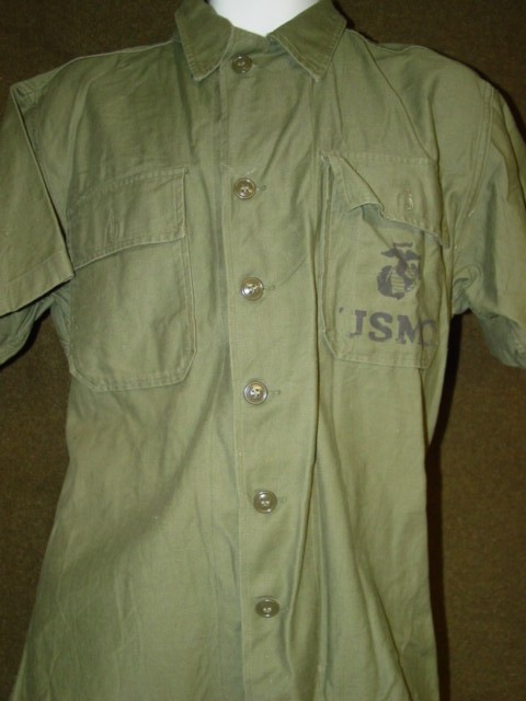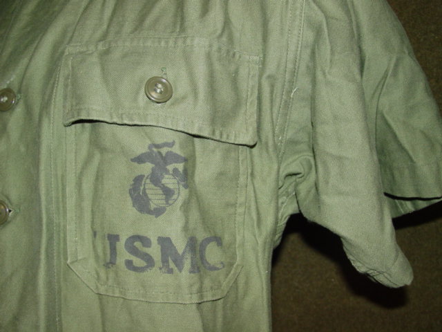 are used to close the shirt and pockets.  The front pocket has an EGA stamped with black ink.