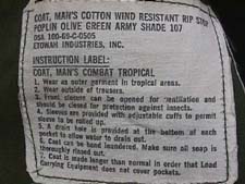 Two white tags were sewn to the uniform. They contained information such as date of manufacturing, manufacturer's