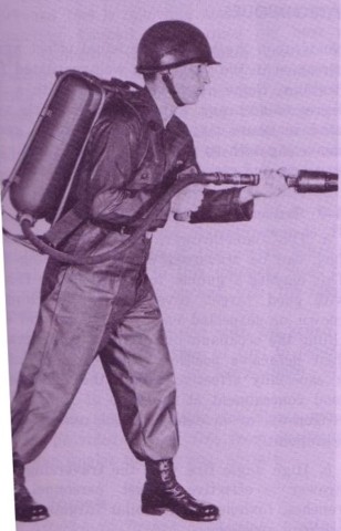 The following pictures illustrate different techniques the soldiers could employ to handle the flamethrower: