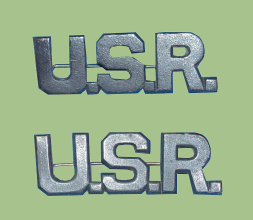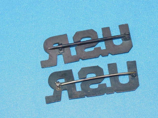 The item featured here is aset of collar insignia issued by the US Army during WWI. All metal construction. Pin-back design. Block letters spell out USR.