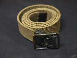 The belt consisted of a thin canvis strap with a metal belt buckle.  The buttons were made of metal.