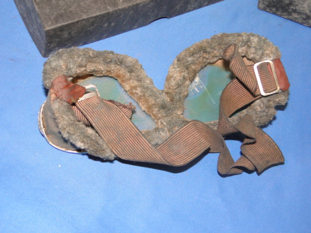 The mask is equiped with an elastic band to secure it to the head of the soldier. The back of the leather shows a