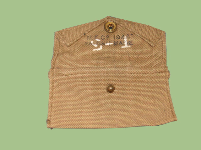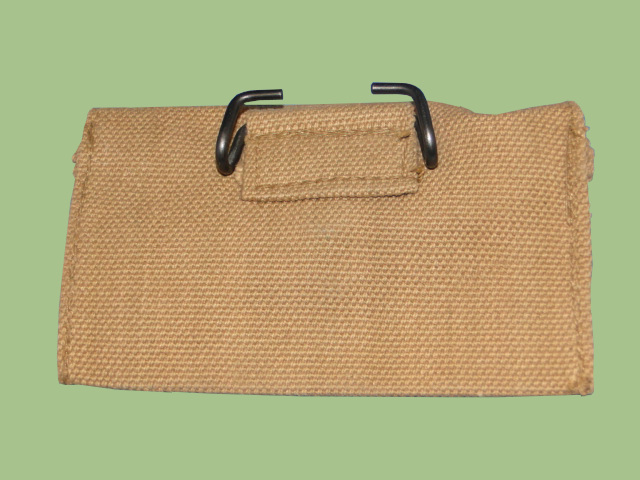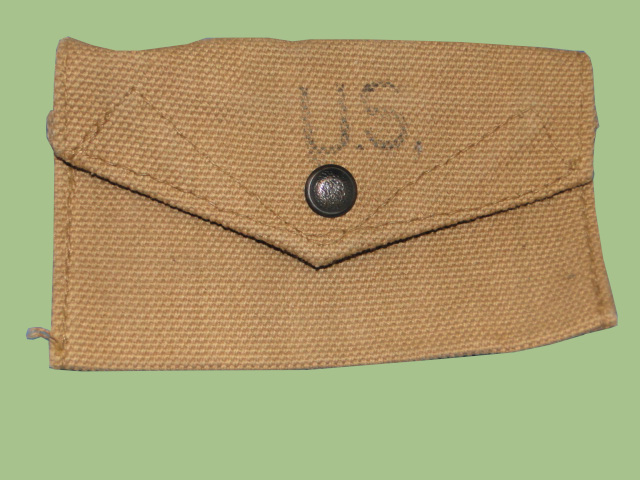 Of canvas construction.  Khaki color.  Use to carry a first aid bandage.  Single snap