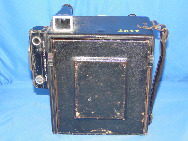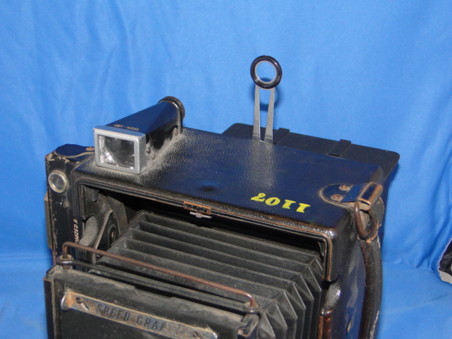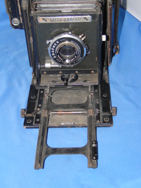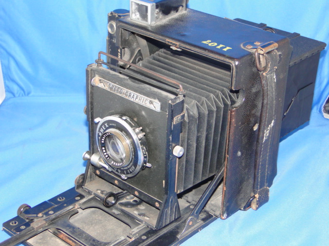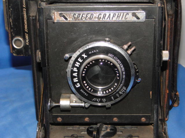 The camera was manufactured by Speed Graphic. The lense is manufactured by