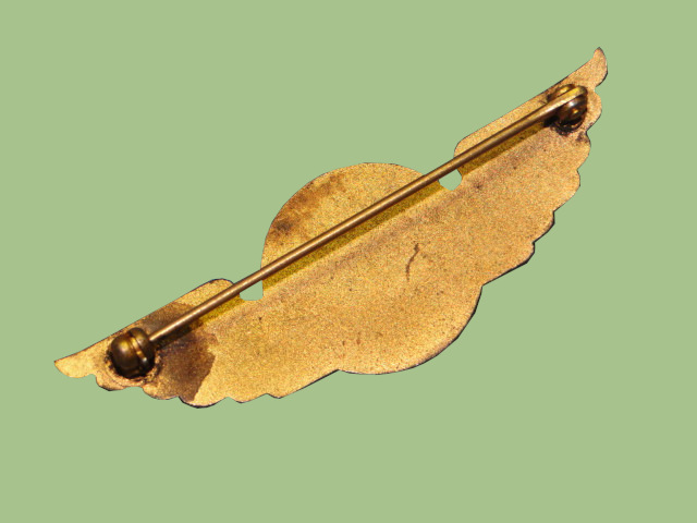 an eagle placed above.  Pin-back construction.