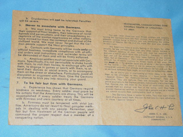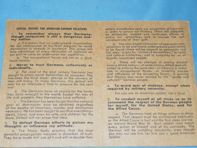 The title of the pamphlet read "Special orders for American german relations". Some of the
