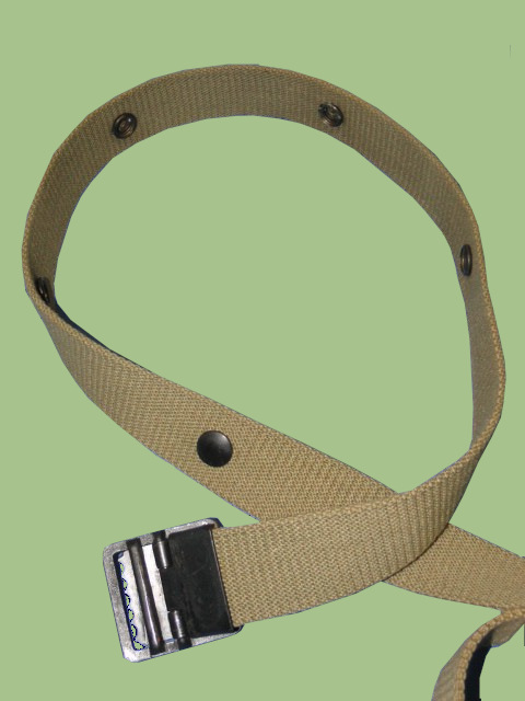 As issued to US Marines during WWII. Of canvas construction. Khaki color. Metal buckle.