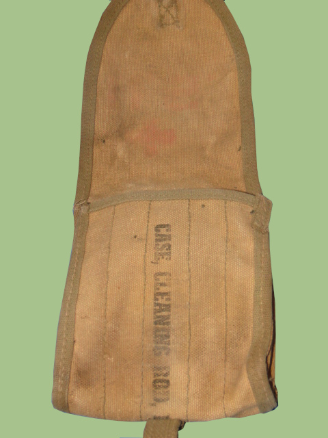 Of canvas construction.  Khaki color.  This is a cleaning rod bag that has been field