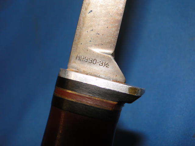 The knife is marked at the base on both sides.  One side reads MR330 - 3 1/2.  The other