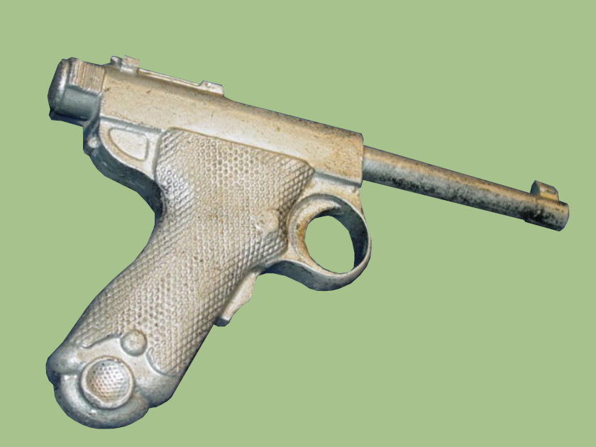 The item featured here is a model of a WWII Japanese papa Nambu.  Of solid aluminum construction.