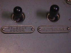 plaques indicated the purpose for the switches. For example, one read "Standby power". The other