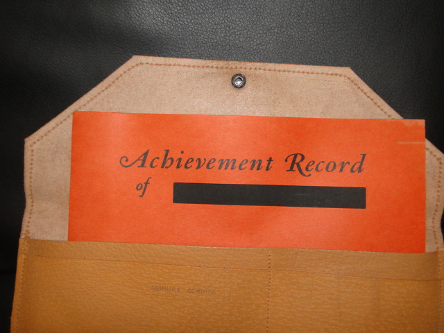 displays the US Army eagle on gold.  A folder labeled "Achievment record" is found inside.