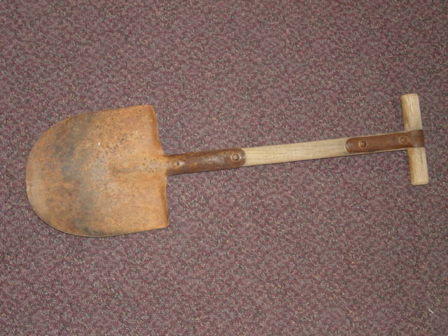 The design of the shovel consisted of a fixed shovel head with a wooden handle which ended in a metal loop through