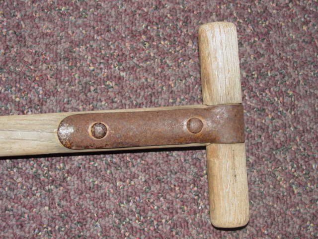 which a perpendicular piece of wood was secured, therefore forming the "T" of the handle.