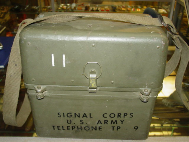 This is a US Army field communications item. As issued during World War two. This is a US Army field phone. Type TP=9.