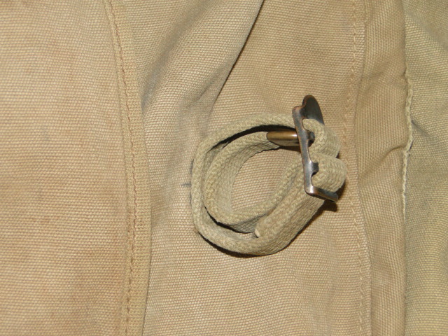 The pack has a strap with two gromets. Just below is a loop. This mechanism is how