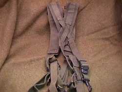 This is a set of US Army WWII Load Bearing shoulder straps. Of heavy canvas construction with four metal straps designed to