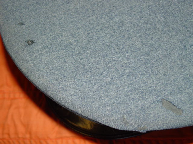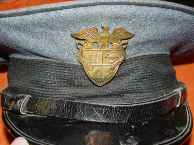 This US headgear is currently being reproduced. It is becoming more difficult to be able to tell the fake ones from the real ones because the quality of the reproductions is improving. The collector must become familiarized with the construction style and materials employed in the manufacturing of this headgear. Attention to the details is critical in order to be able to determine the authenticity of the collectible.