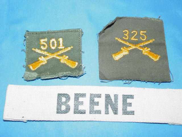 The 501st and 325th infantry Divisions patches were worn in the collar of the field shirts. The white