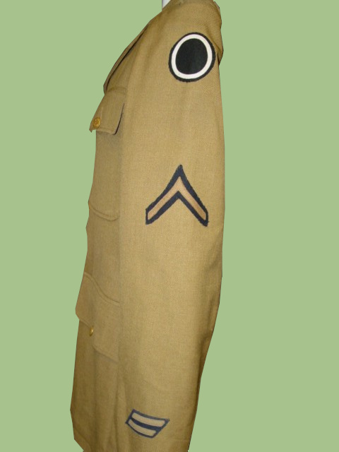 The tunic has the 1st Corps patch on one sleeve. Of felt construction. This is an early type patch.