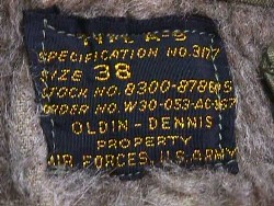 Of cotton construction. Lined with heavy wool. Green color with Army Air Corps stamp on white