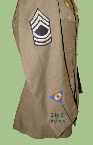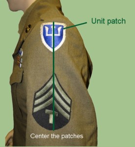 Unit patch 1/2 to 1 inch below shoulder seam and centered.