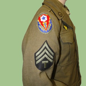 The following photos show where the Patches are placed on the WWII US Army enlisted man dress tunic ( known now