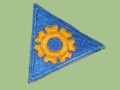 for mastering each skill. Of dark Blue background with a yellow thread embroidered design. Triangular shape. cut-edge