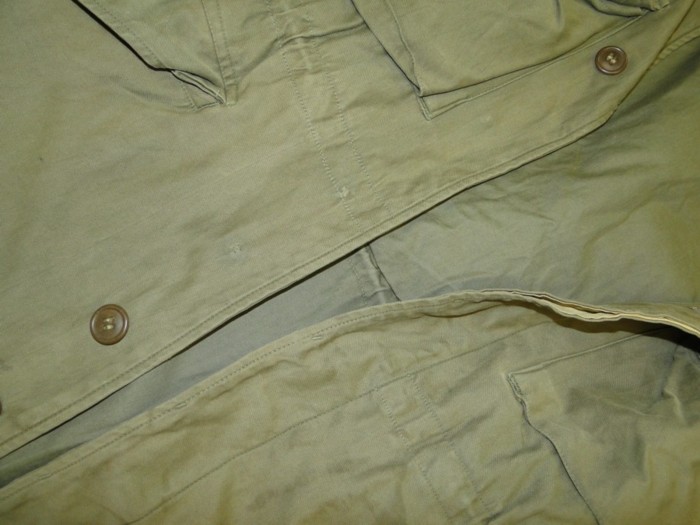 This item is currently being reproduced. It is becoming more difficult to be able to tell the fake ones from the real ones because the quality of the reproductions is improving. The collector must become familiarized with the construction style and materials employed in the manufacturing items like this one. Attention to the details is critical in order to be able to determine the authenticity of the WWII US uniforms.