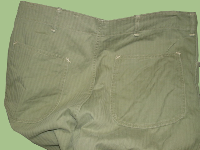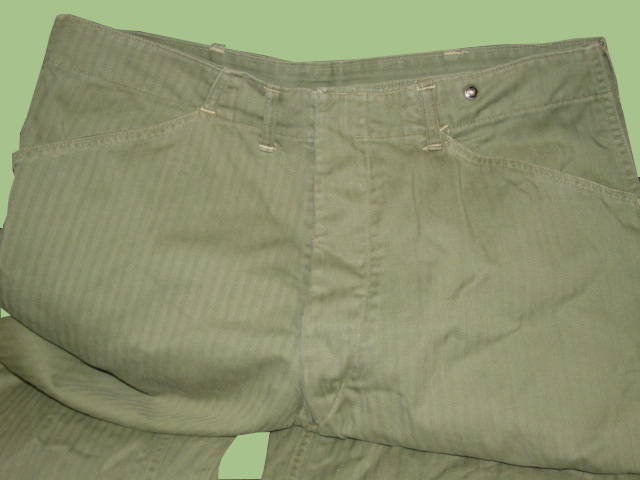 The item featured here is a set of HBT pants. As used by the US Marine Corps during WWII. The construction
