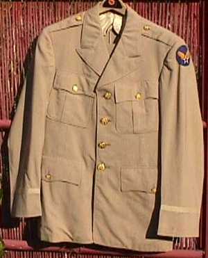 The back of the uniform is plain, no belt is worn on the jacket. An Army Air Force patch is located on the