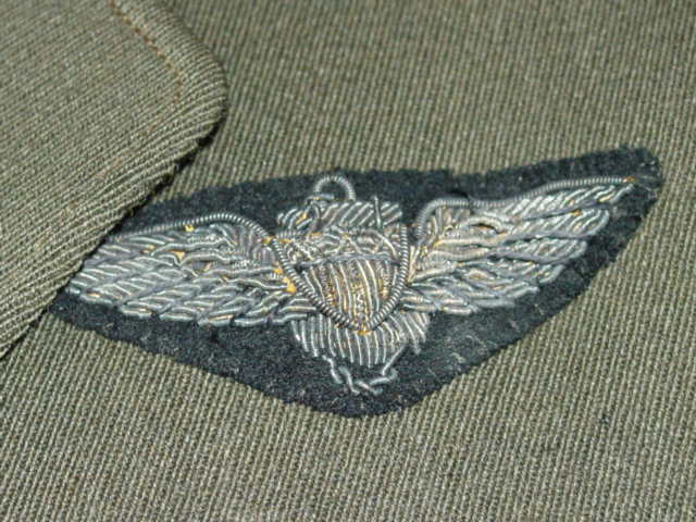 the breast area. This uniform has a beautifully constructed bullion set of navy wings. The