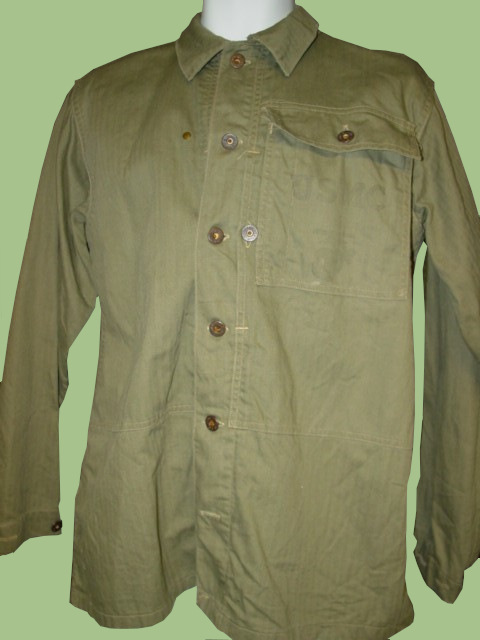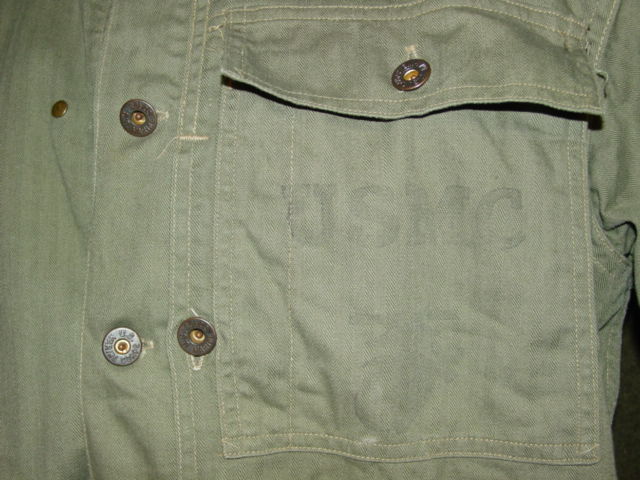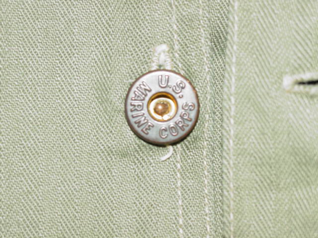 The field shirt featured here was employed by the Marine Corps (USMC) during WWII. Of HBT construction.