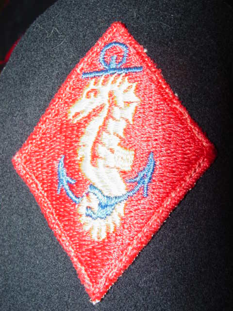 The triangular patch located on one of the sleeves is an amphibious warfare patch. It was given