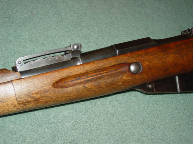 The Mosin Nagant rifle came equipped with closed iron sights. The sample featured here has the cleaning rod.