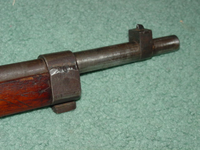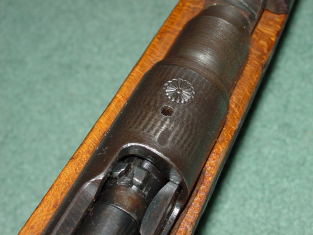 The Arisaka rifle came equipped with an open iron sight. The bayonet lugnut can be seen