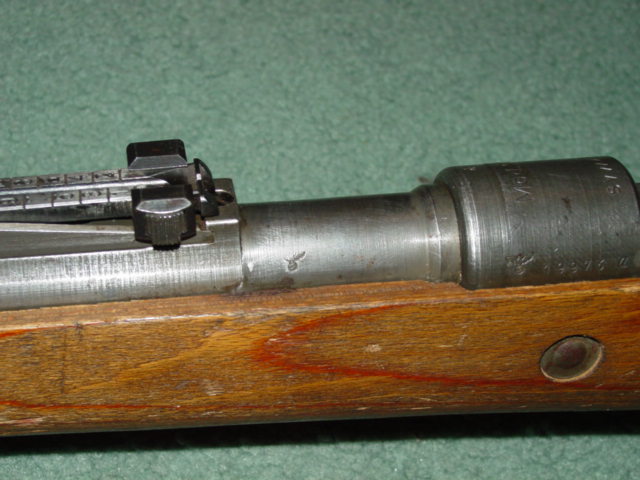 The K-98 rifle came equipped with open iron sights. Notice that in the last ditch models