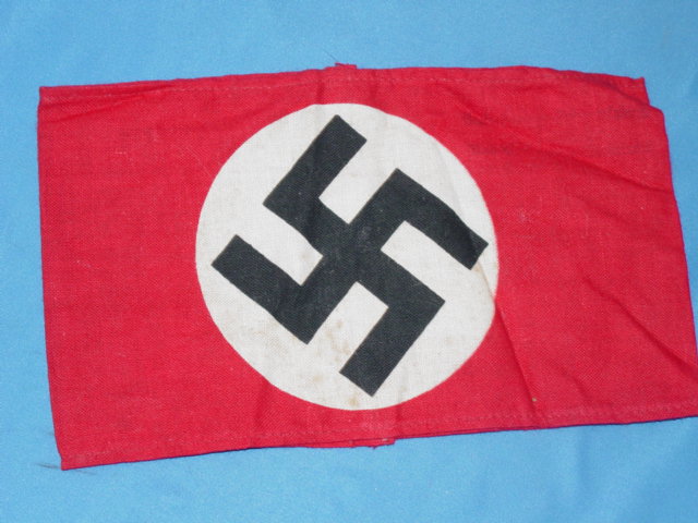 The armband featured here is a German WWII Nazi Party. Lower quality printed construction. Thin cotton