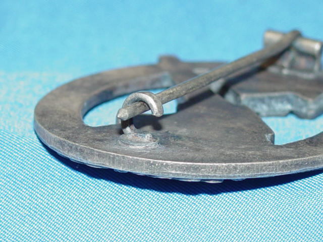 It was secured in place by passing the badge's pin through a series of loops, two or more, that