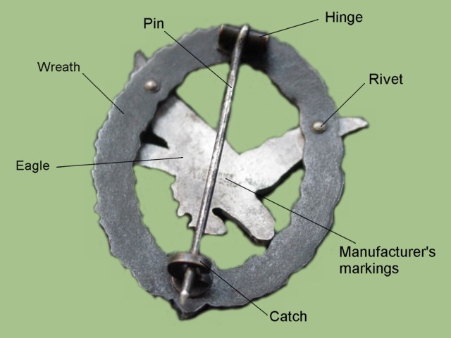 the constructionof the badge consisted of two pieces. A wreath and an eagle. A single rivets in each wing