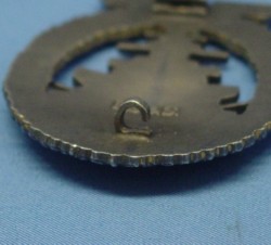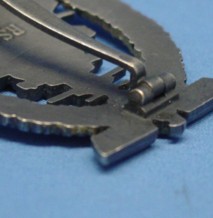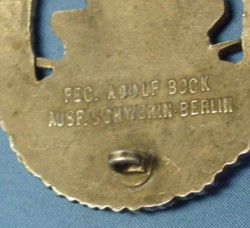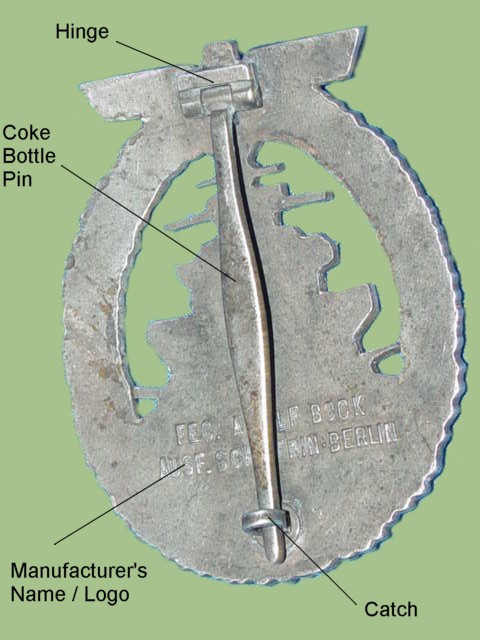 The manufacturer markings are placed on the lower section of the back of the badge. The